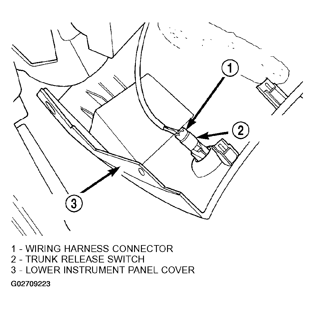 32. Install the wiring harness connector on the trunk release switch in the lower instrument panel cover (Figure ).