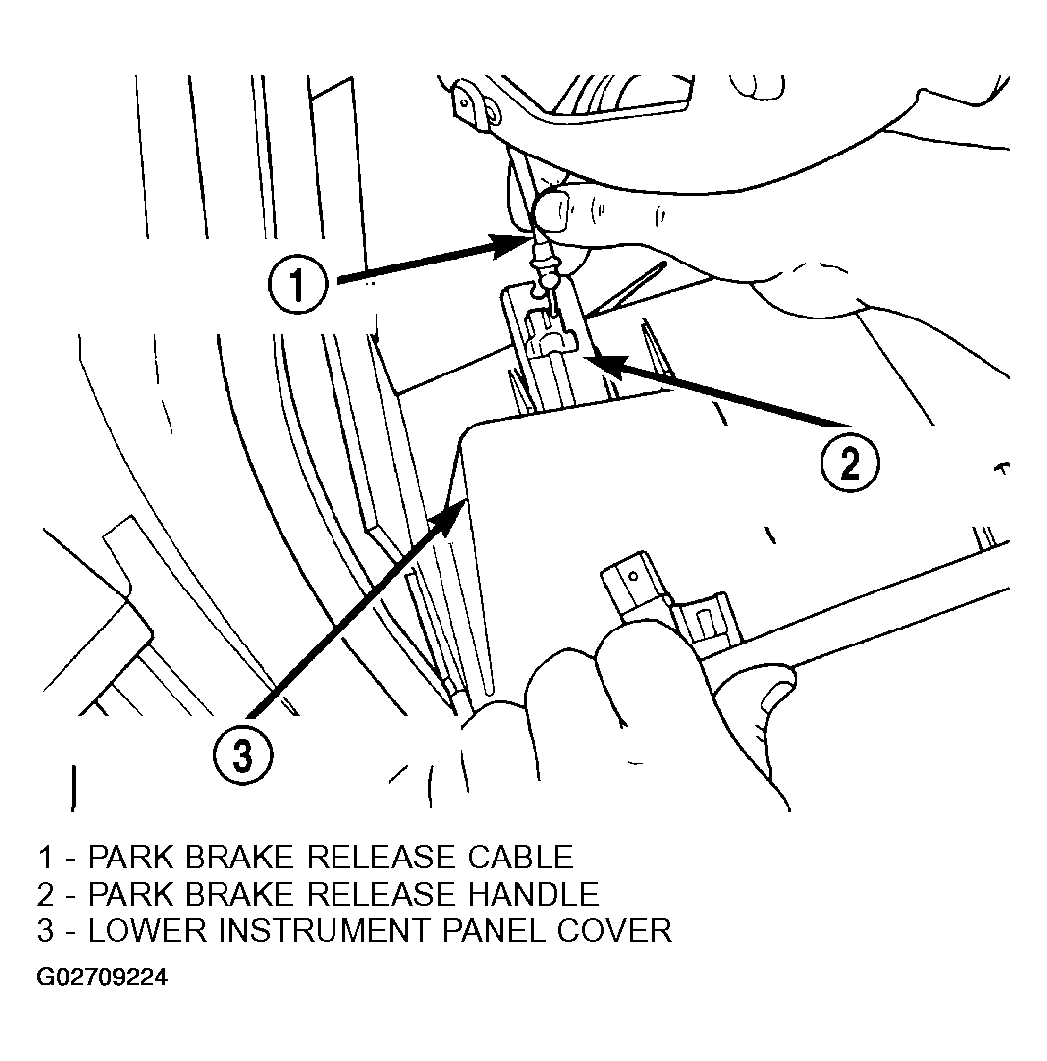 31. Install the parking brake release cable on the parking brake release handle in the lower instrument panel cover (Figure ).