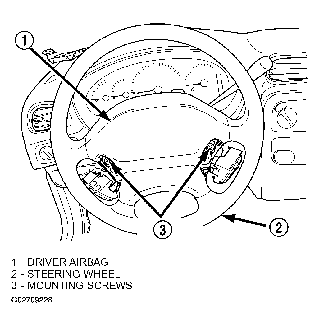 26. Install the airbag module on steering wheel. Install only the two original or correct replacement airbag module attaching bolts (Figure ). Tighten the two airbag module attaching bolts to a torque of 8 N.m (75 in. lbs.).