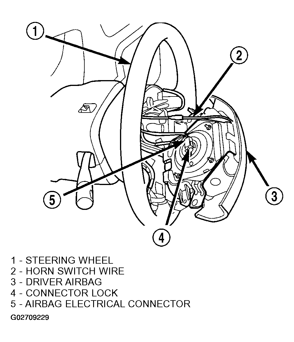 24. Install the airbag electrical lead into connector on back of driver airbag (Figure ). Be sure electrical connector from clockspring is securely latched into driver airbag connector.