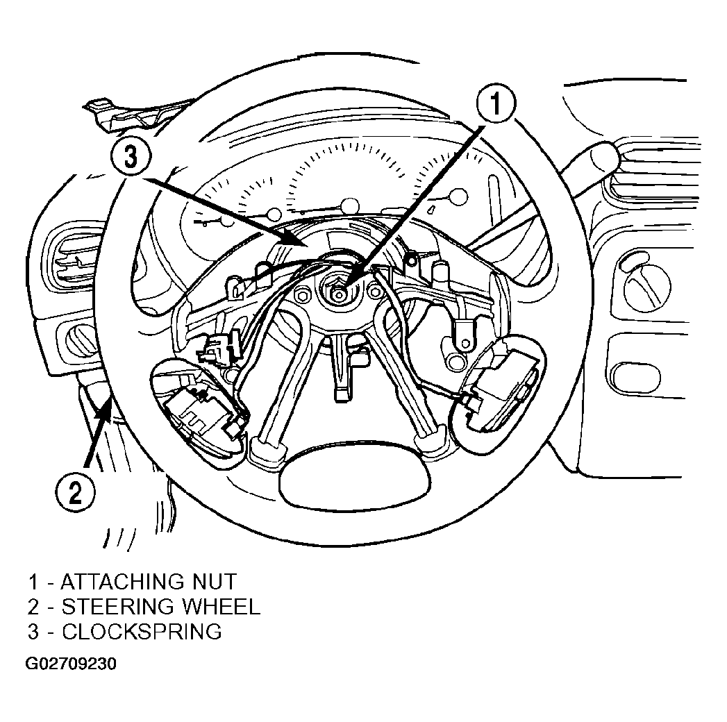 CAUTION: Do not install steering wheel by driving it onto the shaft. Pull steering wheel down onto steering column shaft using ONLY the steering wheel retaining nut.