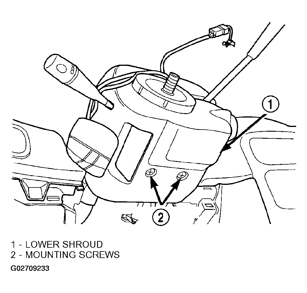 16. Install the lower shroud (Figure ) on the steering column. Install and securely tighten the 2 screws attaching the lower shroud to the steering column.