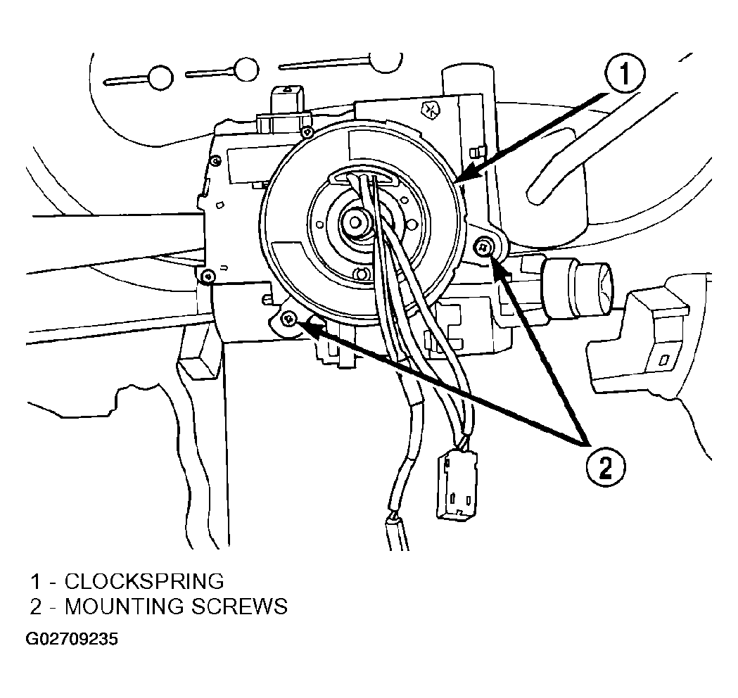 13. Install the clockspring on the steering column. Install and securely tighten the two screws (Figure ) mounting the clockspring to the steering column.