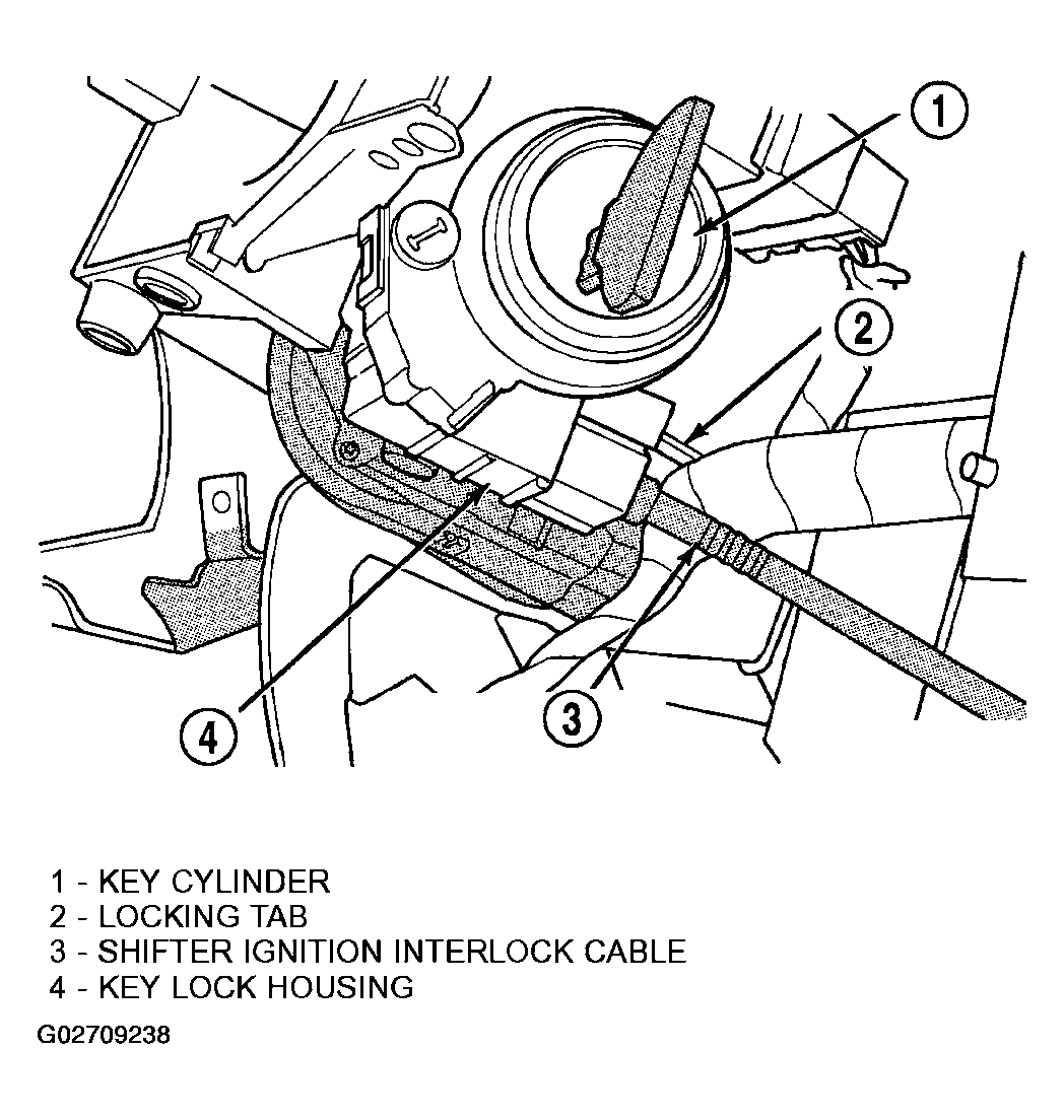 5. If the vehicle is equipped with a floor shifter, install the shifter/ignition interlock cable (Figure ) in the lock cylinder housing.