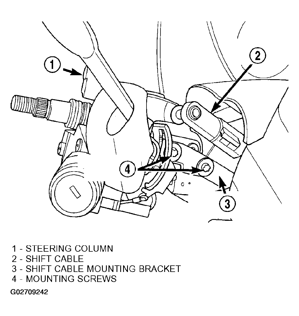 6. Install the shift cable mounting bracket (Figure ) on the steering column. The shift cable mounting bracket is mounted to the steering column by the two mounting screws.