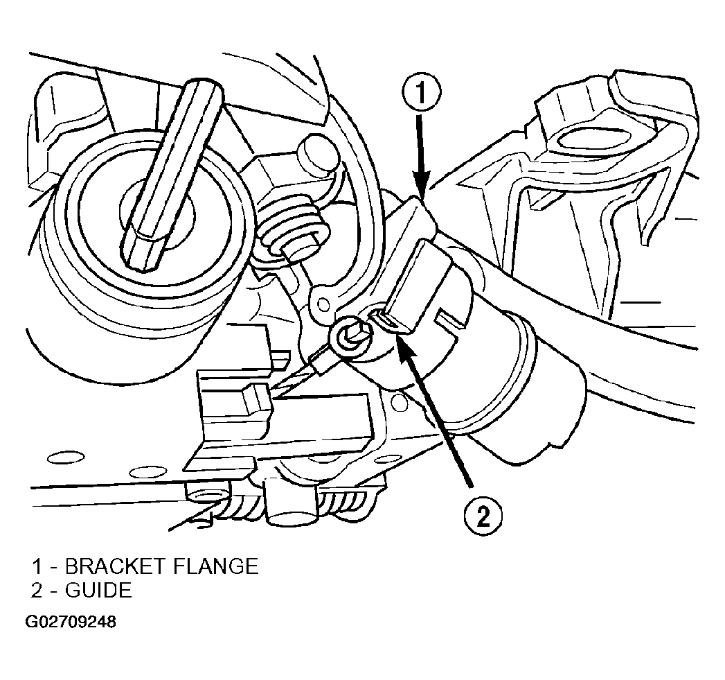 2. Slide the solenoid completely onto the shift lever mounting stud aligning the plastic guide formed into the solenoid housing with the flange on the shift lever mechanism bracket (Fig 3 ).