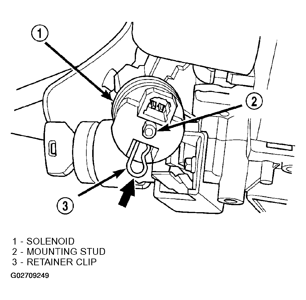 8. If the vehicle is equipped with a steering column mounted shift lever, install the brake transmission interlock solenoid on the shift lever mechanism. To do so, perform the following: