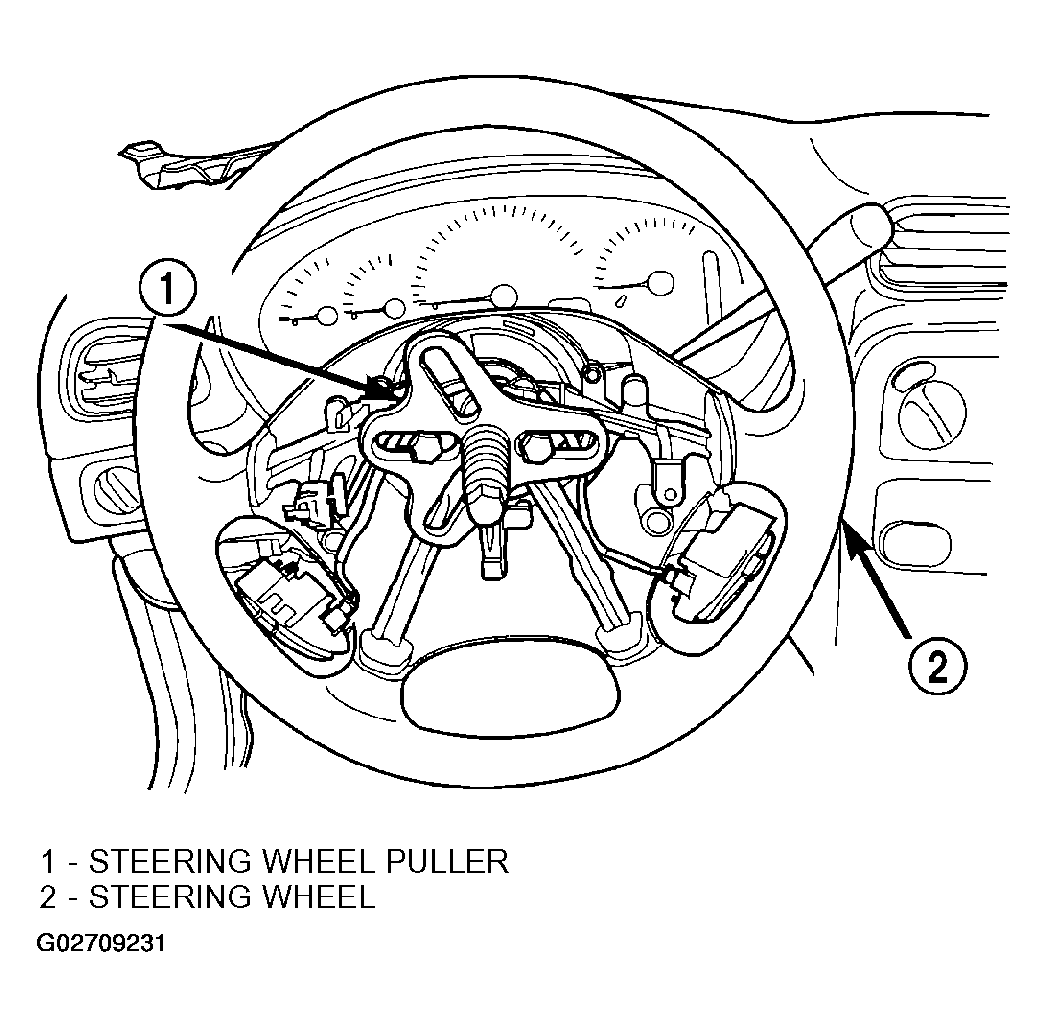 CAUTION: When installing wheel puller on steering wheel, be sure puller bolts are fully seated in the threaded holes in the steering wheel. If bolts are not fully seated in the threaded holes, threads may be stripped out when removing the steering wheel.