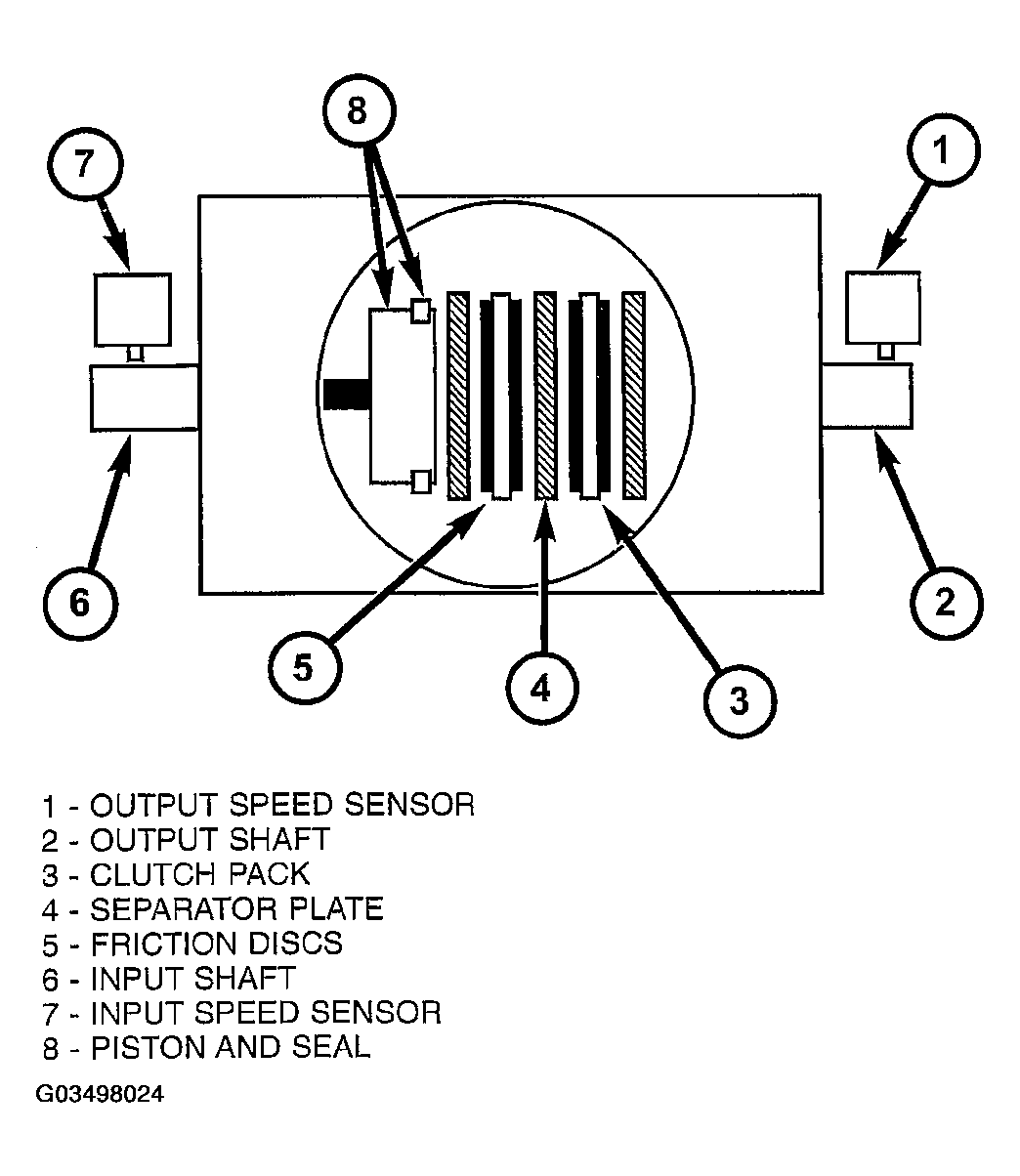 The PCM monitors gear ratio changes by monitoring the Input and Output Speed Sensors. The Input, or Turbine Speed Sensor sends an electrical signal to the PCM that represents input shaft rpm. The Output Speed Sensor provides the PCM with output shaft speed information.