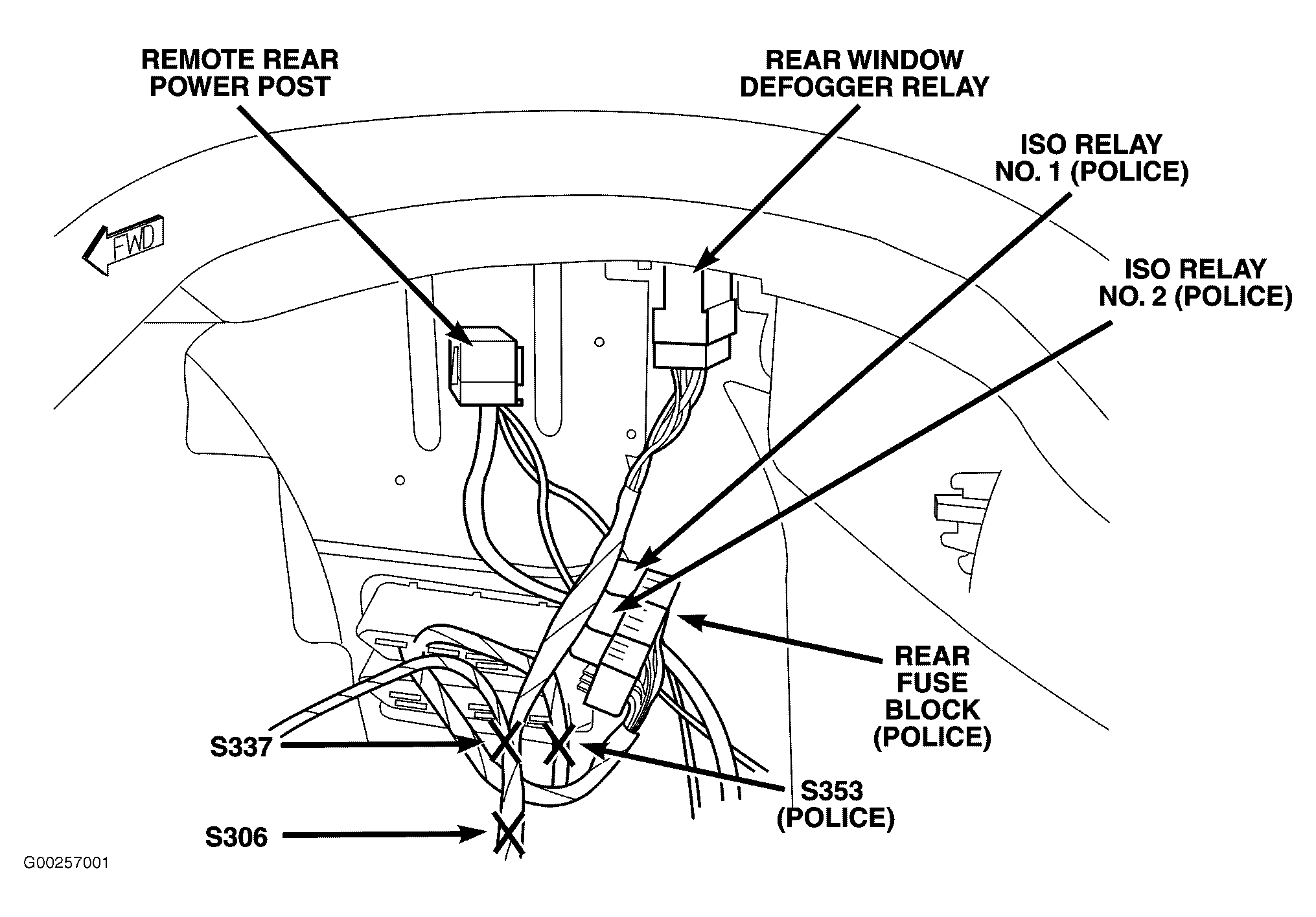 Rear Fuse Block (Police) In trunk, on right side panel. See Figure.