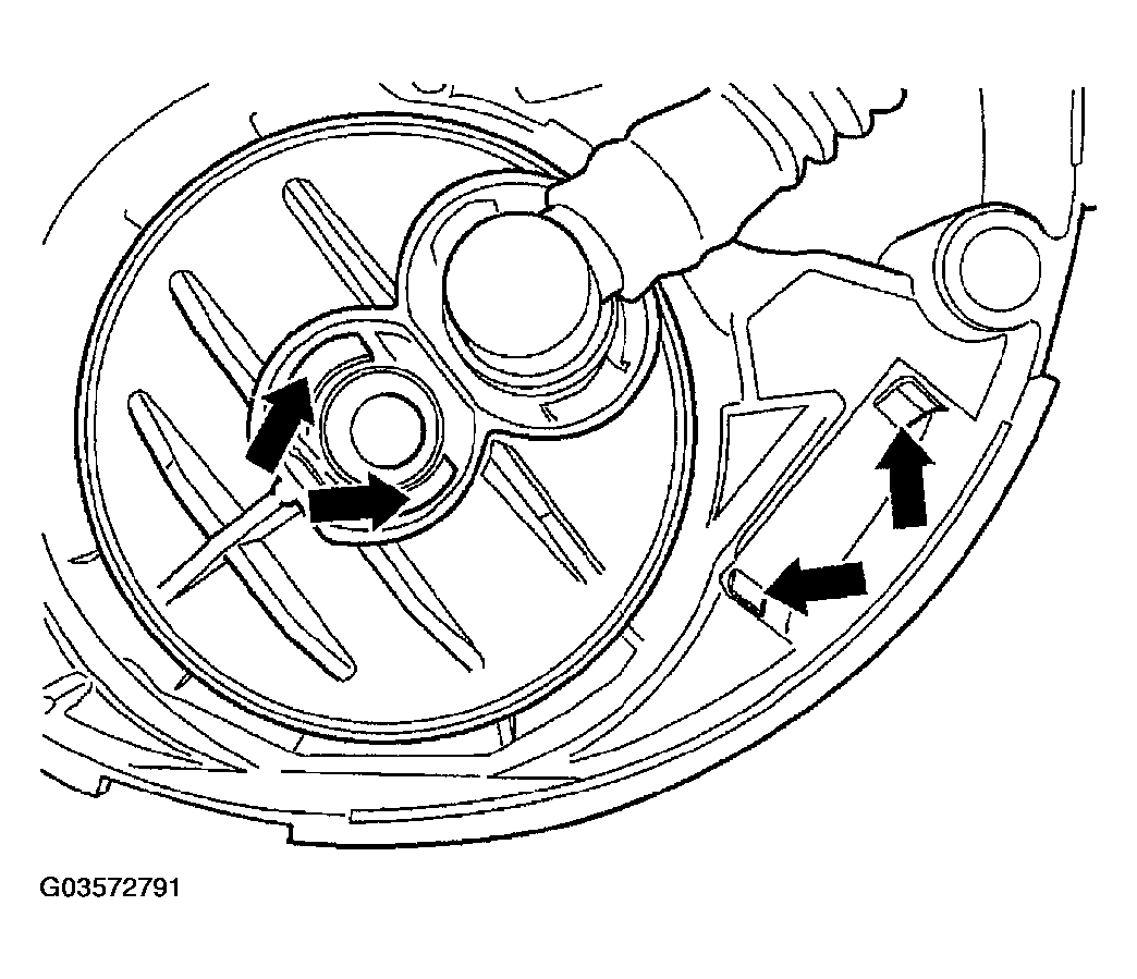 - Remove the Fuel Pump Module lock ring (Fig 2).NOTE: Use a brass punch to remove the 1/4 turn lock ring. Make contact only at the points shown (Fig 3).