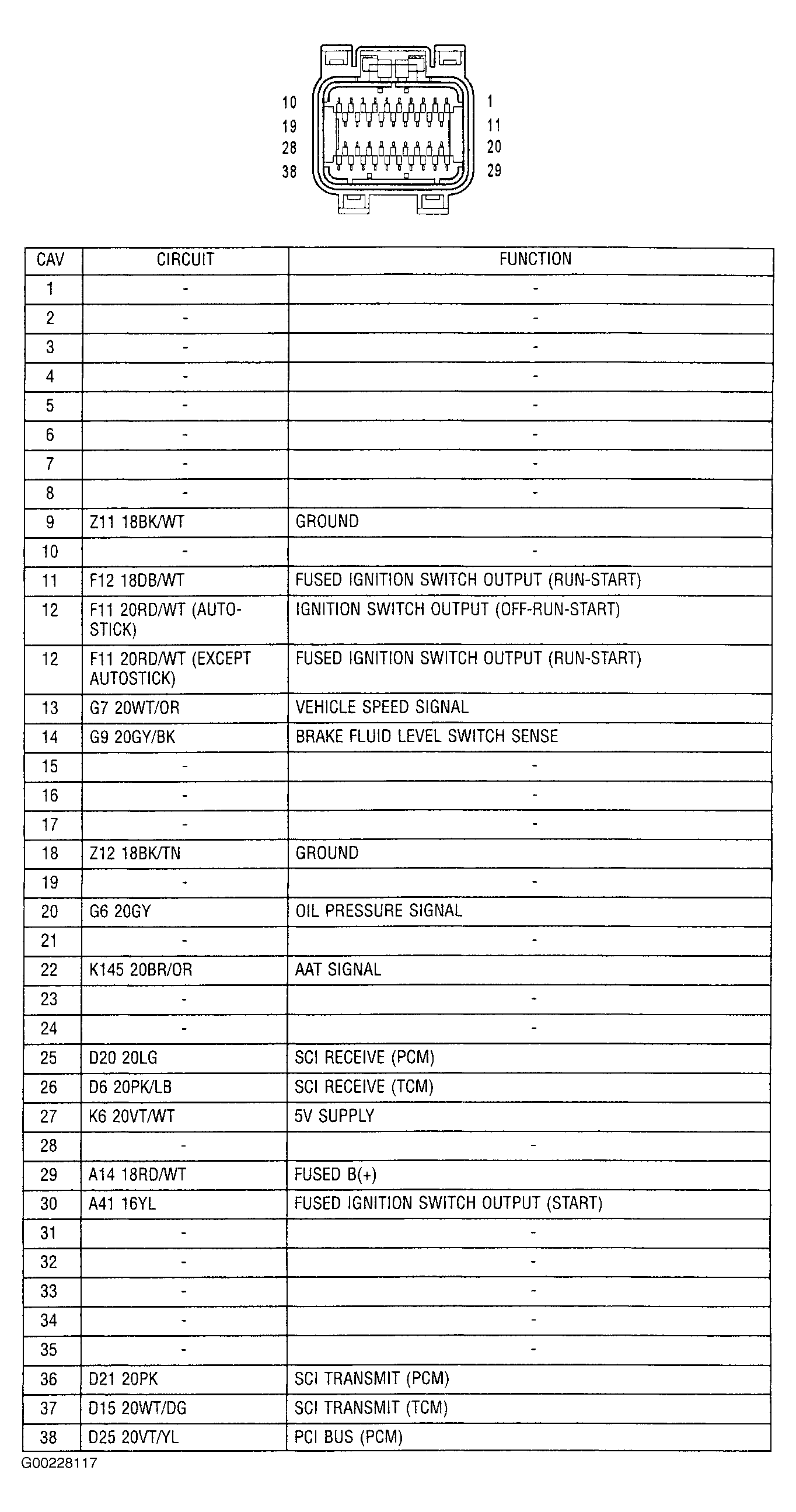 - Turn ignition off. Disconnect PCM harness connectors. See Fig 1. Connect a test light between ground and fused battery voltage circuit at PCM C1 harness connector terminal. See Fig 2 or Fig 3 . If test light illuminates brightly, go to next step. If test light does not illuminate brightly, repair open in fused battery voltage circuit.