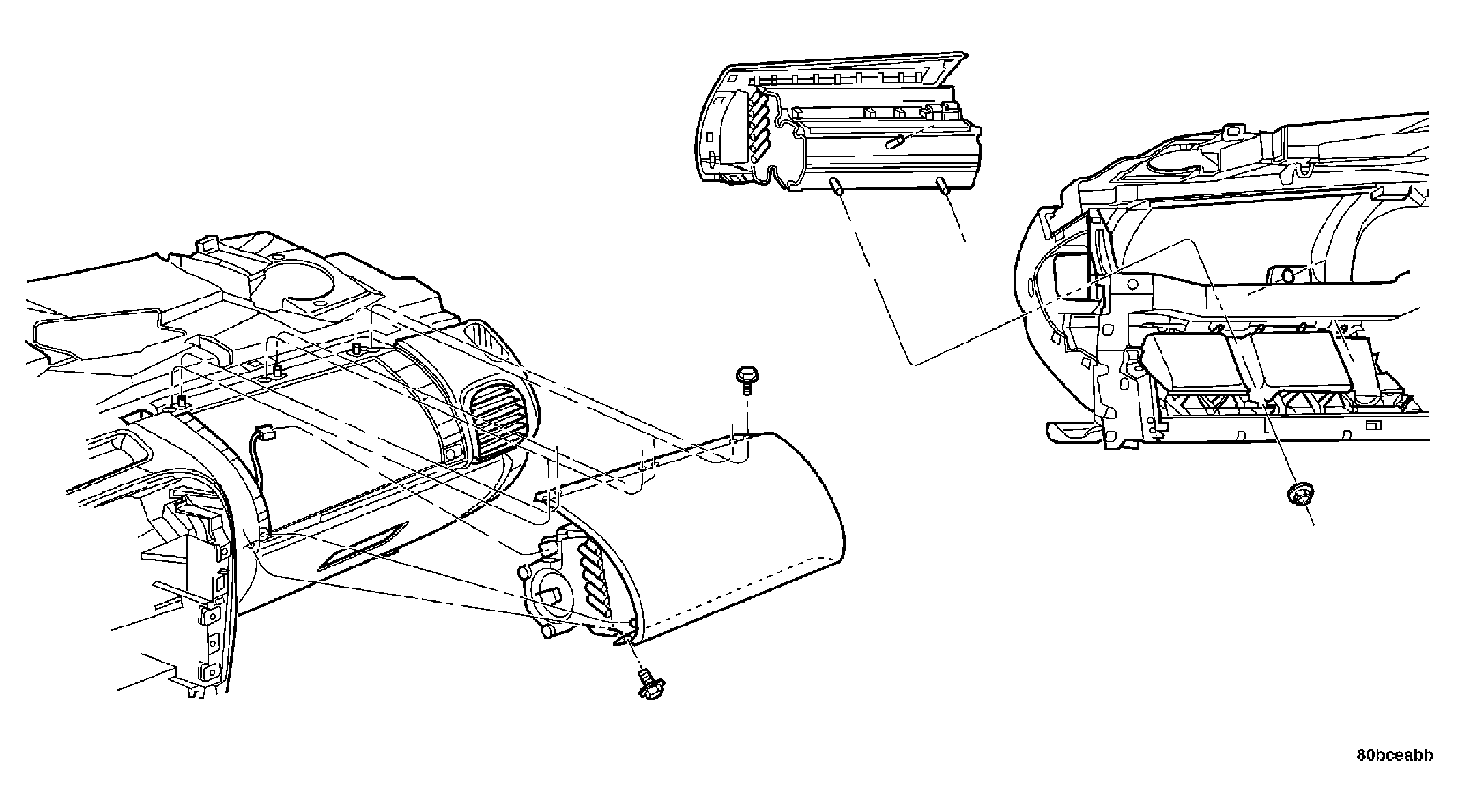 - Install the three passenger airbag cover screws attaching cover to top of instrument panel. See Figure. Tighten screws to 2 N.m (20 in. lbs.) torque.