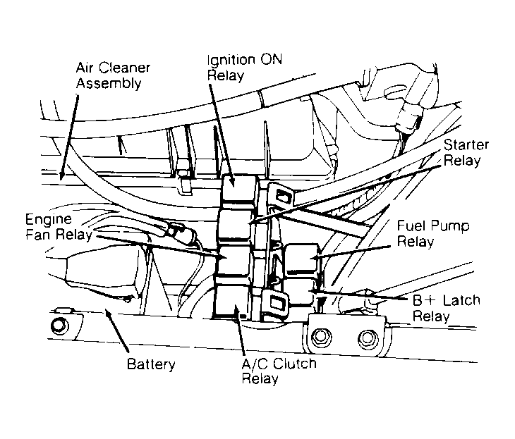 - Fuel pump relay is located in relay box, near battery. See Fig 1