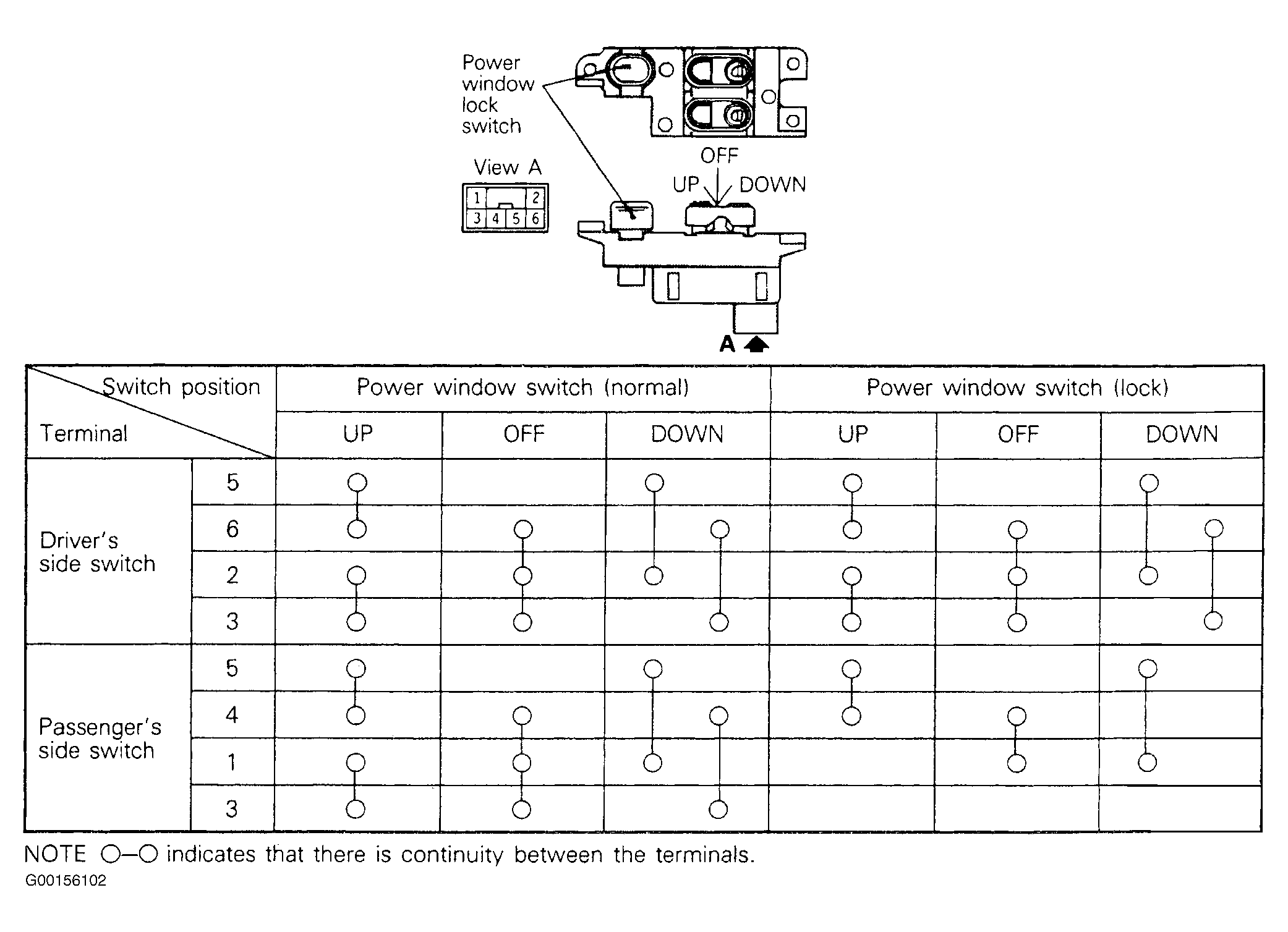 Check power window main switch for continuity. See Fig 1 . If continuity is not as specified, replace switch.