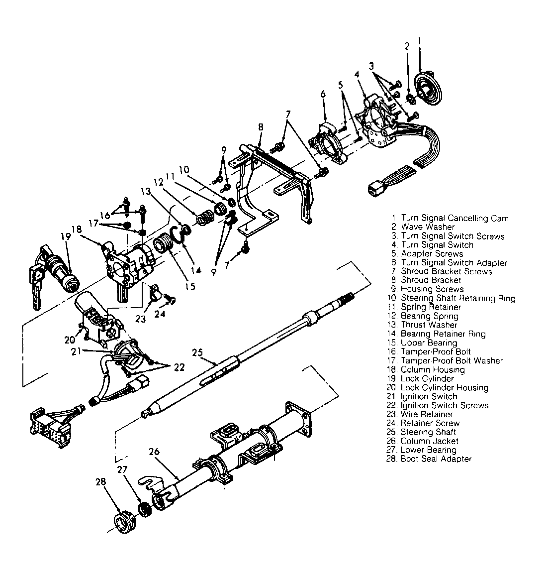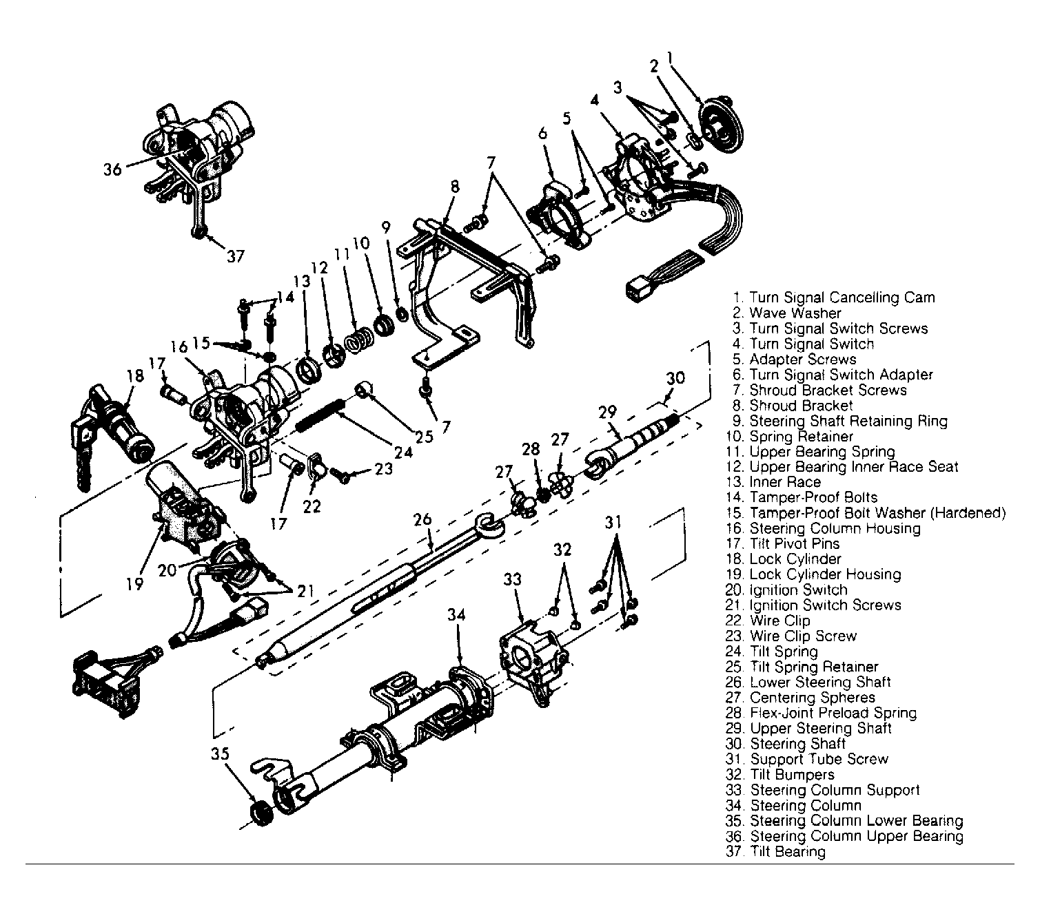 For exploded views of fixed and tilt steering columns, see
