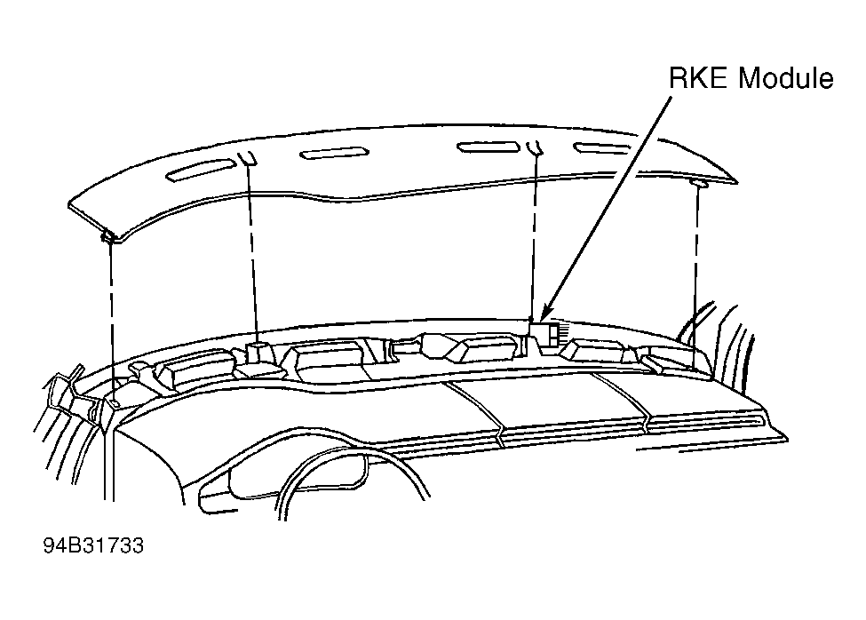 1. Gain access to Remote Keyless Entry (RKE) module. See Figure . Turn ignition off and remove key. Disconnect RKE module Black connector. Turn ignition on. Go to next step.