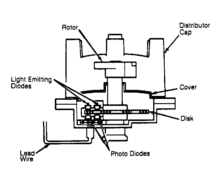 Used only on 3.0L V6 engines, optical distributor provides engine speed and crankshaft position signals to PCM. See Fig 1 . PCM uses this information to control fuel injection, ignition timing and idle speed.
