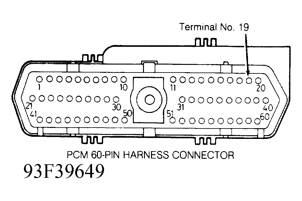 4. If voltmeter reading remains at or near battery voltage during entire cranking period, turn ignition off. Disconnect 60-pin connector from PCM and check terminals for poor connections. See Figure .