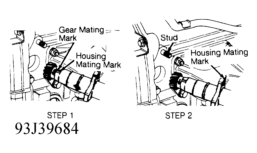 - Install distributor to engine while aligning housing mating mark with center of distributor installation stud. Perform STEP 2. See Fig 1