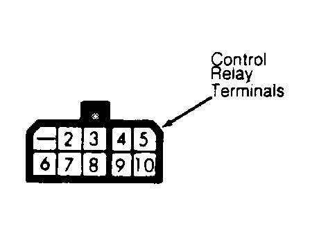 2. Using a 12-volt power source, connect positive lead to control relay terminal No. 10 and negative lead to terminal No. 8. See Fig 1 . Using a voltmeter, check for voltage at terminals No. 4 and 5. Battery voltage should exist. Disconnect power source negative lead from terminal No. 8. Voltage should no longer exist at terminals No. 4 and 5.