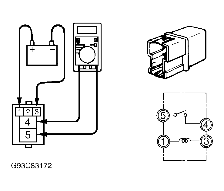 - Connect positive lead of a 12-volt battery to power window relay terminal No. 1, and negative lead of battery to terminal No. 3. See Fig 2