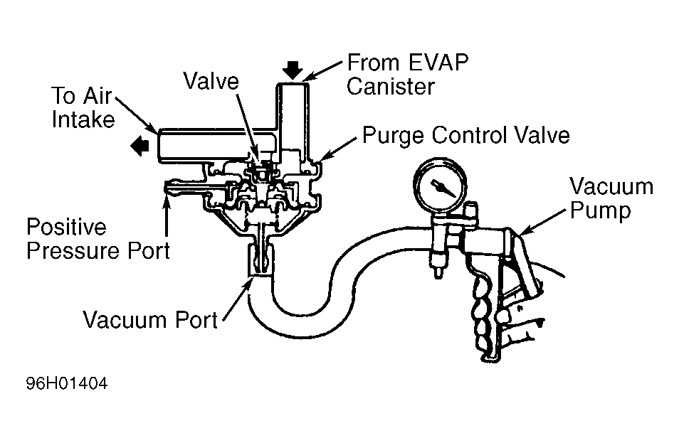 - With no vacuum applied, air should pass through purge control valve. Apply at least 8 in. Hg of vacuum on purge control valve. Air should now pass through purge control valve. Remove vacuum pump from vacuum port.
