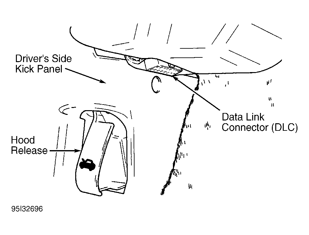 - Connect scan tool to Data Link Connector (DLC), located below driver's side of instrument panel. See Fig 1 . Turn ignition on.