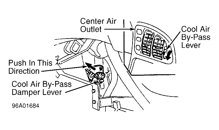 - To install, reverse removal procedure. When installing center air outlet, place cool air by-pass lever on center air outlet in the fully downward position. See Fig 2.