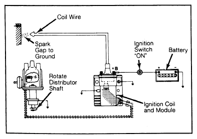 - Crank engine and check for sparks at gap to ground. If previous tests have disclosed no problem and no spark exists at gap, replace control module.