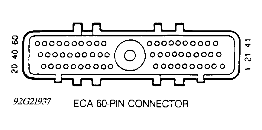 1. Using a DVOM, check for continuity to ground on ECA terminals No. 40 and 60. See Figure. Resistance should be zero ohms. If resistance is not zero ohms, repair open to ground.