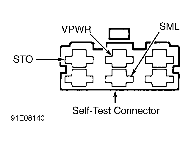 2) Using a jumper wire, connect self-test connector STI terminal to ground. See Figure and Figure . Using an analog VOM, connect positive (+) lead to self-test connector SML terminal. See Figure and Figure . Connect the negative (-) test lead to engine ground.