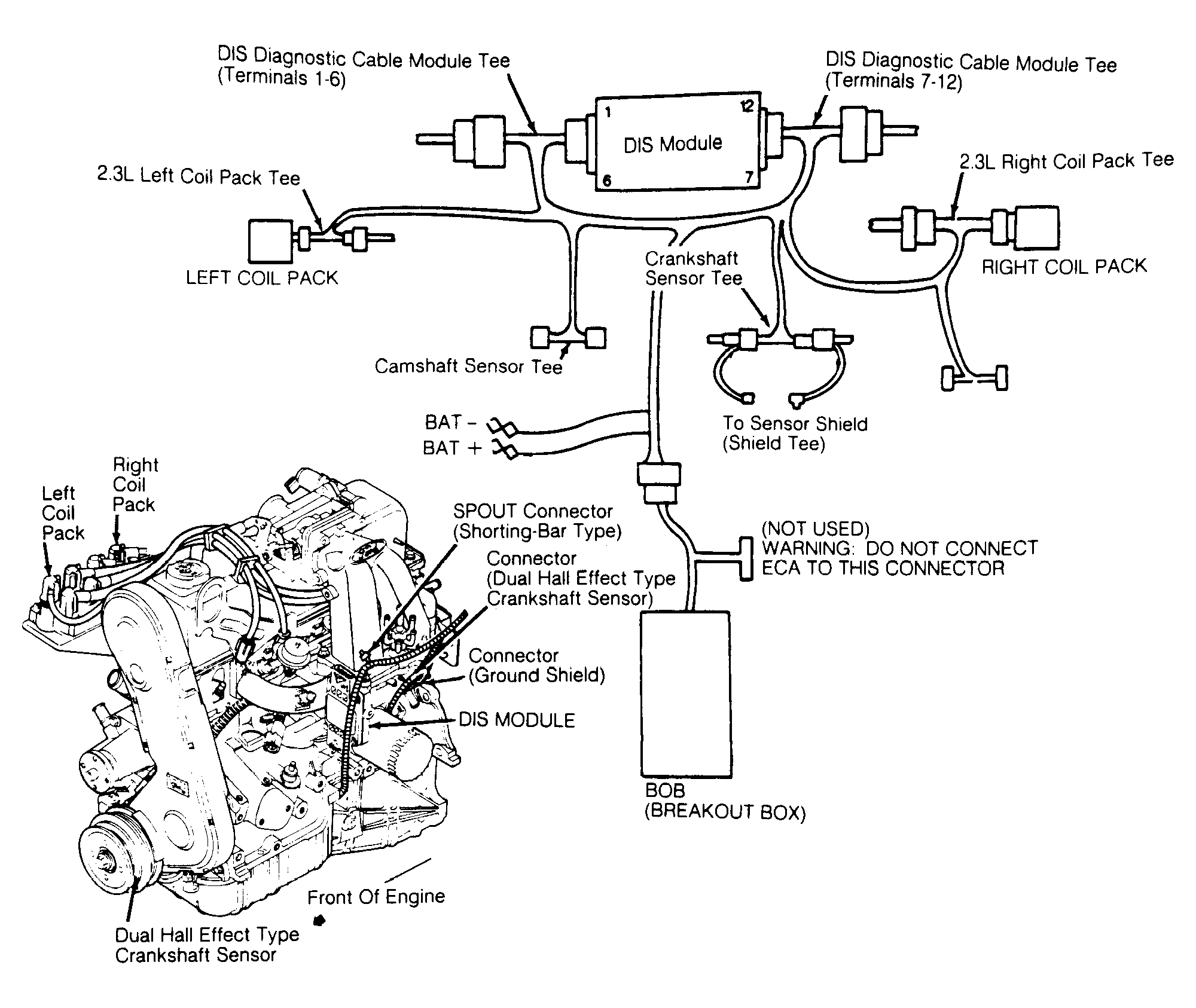WARNING: DO NOT connect ECA to DIS diagnostic cable. If ECA is connected to DIS diagnostic cable, ECA may be damaged. ECA 60-pin harness connector may be connected to an additional breakout box only.