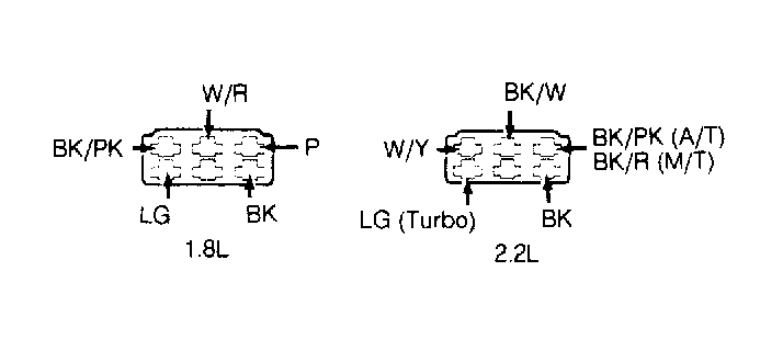 8. On all models, disconnect fuel pump relay connector. Turn ignition on. Measure voltage at Light Green (1.8L), or Black (2.2L) wire of fuel pump relay connector. See Fig 4 . On non-turbo models, if voltage is less than one volt, repair circuit between fuel pump and fuel pump relay. On turbo models, if voltage is less than one volt, replace ECA. On all models, if voltage is more than one volt, repair circuit short to power.
