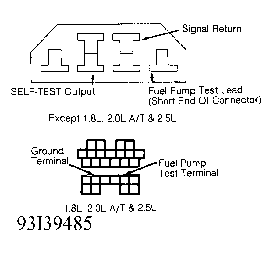 - Release fuel pressure. Install fuel pressure gauge. On all models except 2.5L, connect a jumper wire between ground and fuel pump test terminal at the Data Link Connector (DLC). See Fig 1. On 2.5L, connect a jumper wire between ground terminal (Black wire) and fuel pump terminal (Light Green wire) at the Data Link Connector (DLC). On all models, turn ignition on, but DO NOT start engine. This activates the fuel pump.CAUTION: Do not activate fuel pump for long periods, or engine may hydrostatically (liquid) lock.