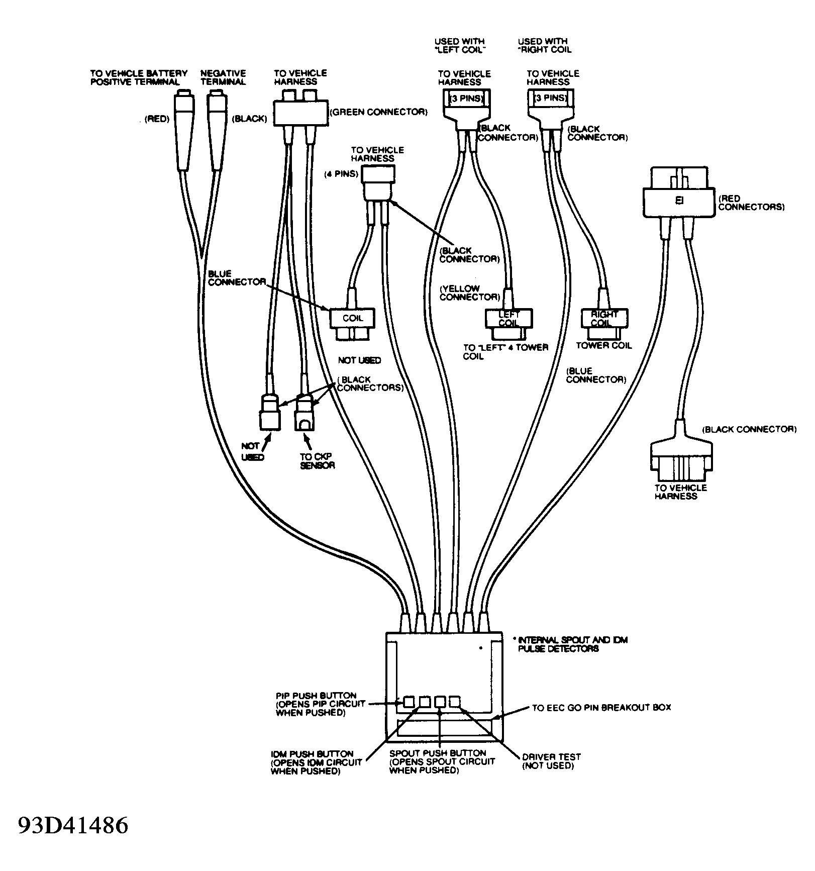 NOTE: EI Diagnostic Cable (Rotunda 007-00059) should be used to diagnose this system. This cable is equipped with additional circuits and components used to enhance and modify signals for testing purposes. If an aftermarket test cable is used or diagnosis is being performed using only a DVOM, become familiar with system wiring diagram and system operation.
