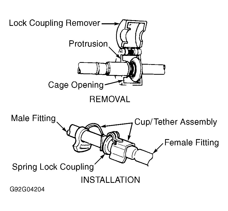 Home >> Ford >> 1994 >> Probe Base, Automatic >> Repair and Diagnosis (Single Page) >> Engine Performance >> Remove, Overhaul & Install >> Engine Controls - Remove/Install/Overhaul >> Fuel System >> Fuel Line Connector >> Removal (Spring Lock Coupling)