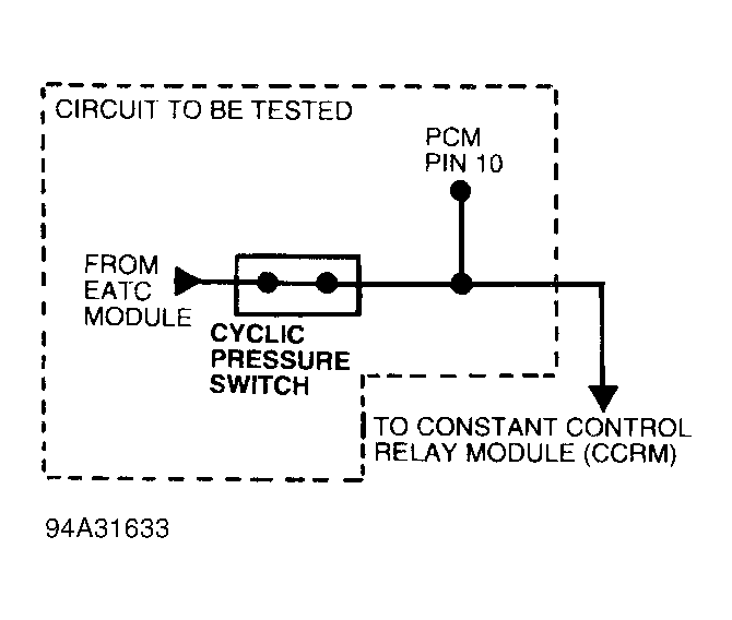 - Turn ignition off. Disconnect and inspect cyclic pressure switch and EATC connector for damage.