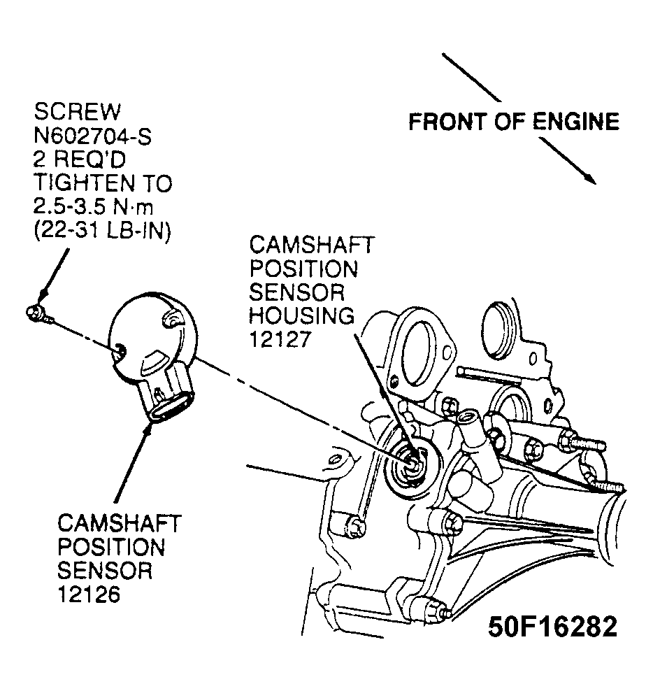 - Disconnect negative battery cable. Unplug harness connector from Camshaft Position (CMP) sensor. Remove CMP sensor mounting screws and sensor from CMP housing. See Figure.