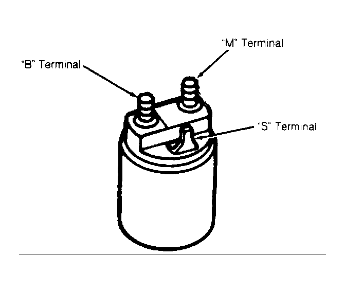 Check for continuity between terminals "S" and "M". See Fig 1 . If there is no continuity, replace solenoid. Connect one ohmmeter probe to solenoid body and other probe to terminal "S". Replace solenoid if there is no continuity. Connect ohmmeter probes between terminals "M" and "B". Replace solenoid if continuity is indicated.