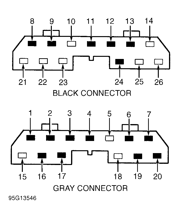 4. Turn ignition off. Unplug Black and Gray REM. Measure resistance between points listed below.
