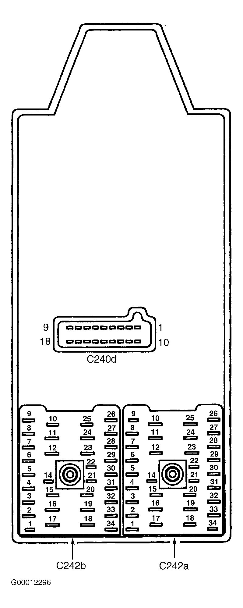 - Ensure GEM is removed from central junction box. Measure voltage between central junction box 18-pin connector C240d terminal No. 3 and ground. See Figure