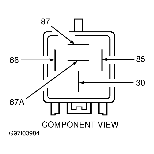 1. Remove relay from harness connector. Measure resistance between relay terminal No. 85 and all other terminals. See Fig 1 . If resistance is 5 ohms or less, replace relay. If resistance is greater than 5 ohms, go to next step.