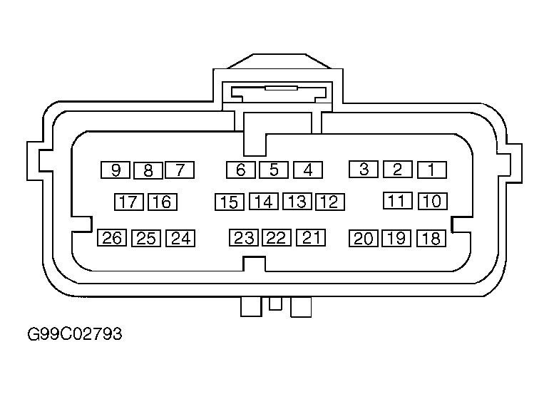 - Turn ignition off. Deactivate air bag system. See appropriate AIR BAG RESTRAINT SYSTEMS article. Disconnect Restraint Control Module (RCM) 26-pin connector C232. See Figure. Inspect RCM connector for physical damage, bent terminals or corrosion. Repair connector as necessary and retest system for normal operation. If connector is okay, go to next step.
