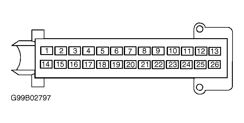 1. Turn ignition off. Disconnect Parking Aid Module (PAM) 26-pin connector. Inspect connector for physical damage, bent terminals or corrosion. Repair connector as necessary and retest system for normal operation. If connector is okay, go to next step.