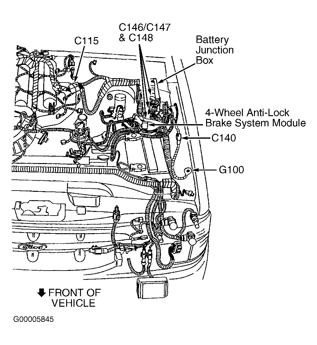 - Turn ignition off. Disconnect in-line 12-pin connector C140 located near 4WABS module. Turn ignition on. Measure voltage between DLC terminals No. 7 (Light Blue/White wire) and No. 16 (Orange wire). Measure voltage between DLC terminals No. 7 (Light Blue/White wire) and No. 4 (Black wire). If either reading indicates no voltage, repair Light Blue/White wire between male half of in-line connector C148 and male half of in-line connector C140. Retest system for normal operation. If both readings indicate voltage, repair Light Blue/White wire between female half of in-line connector C140 and 4WABS module. Retest system for normal operation.