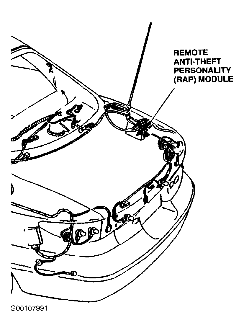 - Ensure ignition switch is in LOCK position. Disconnect Remote Anti-Theft Personality (RAP) module 26-pin harness connector C405. Replace MIRROR/RADIO fuse. Turn ignition switch to ON position. Check condition of replaced MIRROR/RADIO fuse. If fuse is okay, replace RAP module. See REMOTE ANTI-THEFT PERSONALITY MODULE under REMOVAL & INSTALLATION. Retest system operation. If fuse is blown, repair short to ground in Blue/Black wire between central junction box and RAP module. Retest system operation.