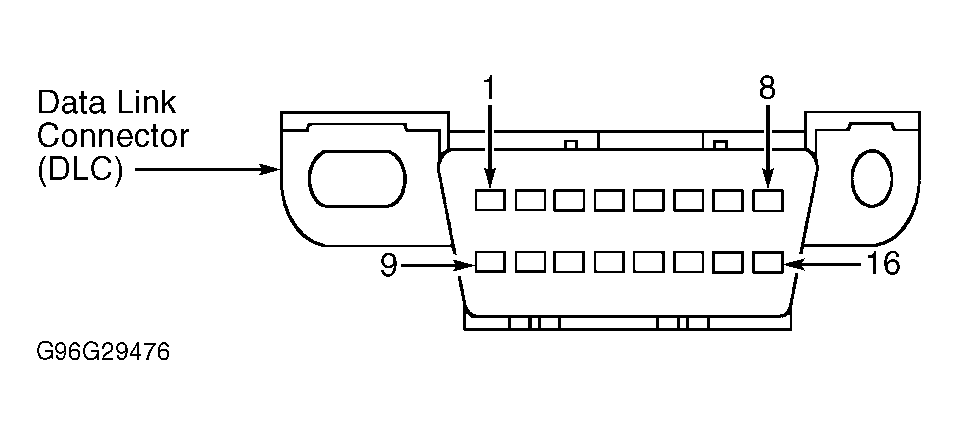2. Turn ignition switch to LOCK position. Disconnect NGS tester. Disconnect PCM harness connector. PCM is located under center console. See Figure. Inspect PCM component and harness connectors for loose, damaged or corroded terminals. Pay particular attention to harness connector terminal No. 16 (White/Blue wire). See Fig 1. Inspect DLC for loose, damaged or corroded terminals. Pay particular attention to terminal No. 2 (White/Blue wire). See Figure. If connectors are okay, go to next step. If either connector is not okay, repair connector(s) as necessary and retest system for normal operation.