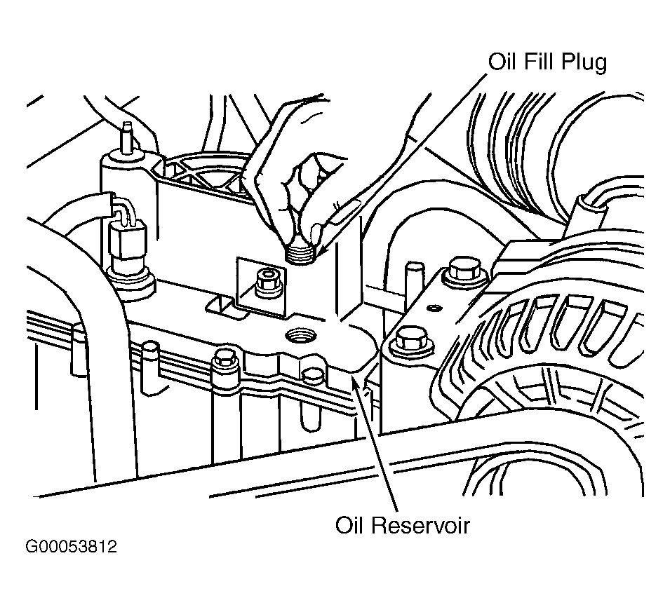 - The level in oil reservoir should also be checked. Remove inspection plug in top of reservoir and check oil level. See Figure. If oil level is within 1" (25.4 mm) of fill hole, level is okay. If oil level is not within 1" (25.4 mm) of fill hole, top off fluid. Attempt to start vehicle. If vehicle starts, a drainback condition may be present. A reservoir that drains back after engine has not been operated for a period of time can cause a hard start and stall condition. Filling reservoir will allow system to prime faster in order to facilitate starting. Determine cause of drainback condition and repair as necessary.