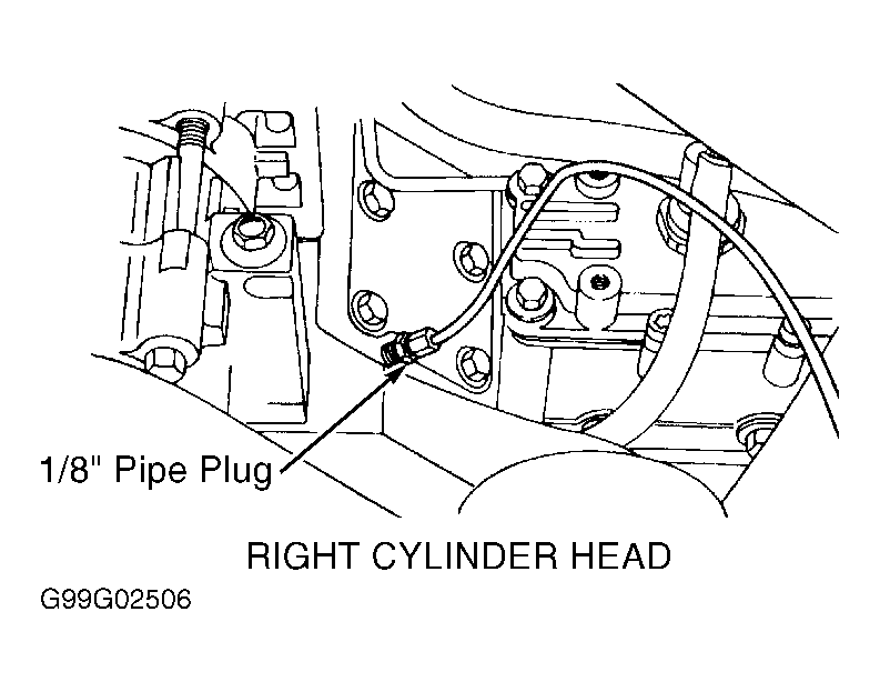 If necessary, remove generator and bracket to access pipe plug. Remove 1/8" pipe plug from top front of right cylinder head. See Figure. Install fuel pressure gauge. Start engine. Check fuel pressure with a full load on engine. DO NOT brake torque engine for more than 10 seconds. If fuel pressure is 45-80 psi (310-552 kPa), fuel pressure is okay. If fuel pressure is not 45-80 psi (310-552 kPa), replace right fuel check valve. Check valve is located in rear of right cylinder head between fuel inlet line and cylinder head.